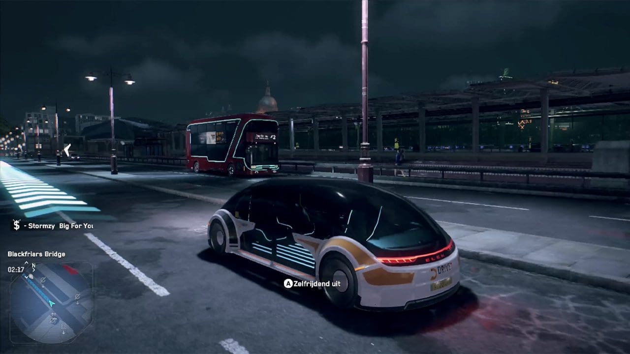 In Watch Dogs 2 had je de beschikking over een smartphone waar de app Driver: San Francisco op stond. Deze app, die een easter egg is naar de gelijknamige Ubisoft game uit 2011, was een soort mini game waarin je als Uberchauffeur mensen oppikte en naar hun bestemming bracht. In Watch Dogs: Legion heeft deze app plaatsgemaakt voor Driver: London. Het is niet meer mogelijk om mensen naar hun bestemming te brengen, maar zoals gezegd zijn er nu mini games aanwezig waarbij je pakketjes op tijd dient te bezorgen. Driver: London daarentegen bestaat simpelweg uit zelfrijdende auto’s met uitgestrekte ramen waar je instapt en naar je bestemming rijdt of laat rijden via de zelfrijdende functie. De Driver: London auto’s vind ik de best rijdende voertuigen in de game, alhoewel alle auto’s in de game wel vlekkeloos rijden. De controls voor het autorijden zijn namelijk beter uitgewerkt en geven direct feedback. Ik ben nog nooit zo weinig van een motor afgevallen met volle snelheid als in Watch Dogs: Legion, het autorijden werkt heerlijk! Maar voor mij was het in het begin wel even wennen om aan de ‘verkeerde kant’ van de weg te rijden, want het is en blijft Engeland!