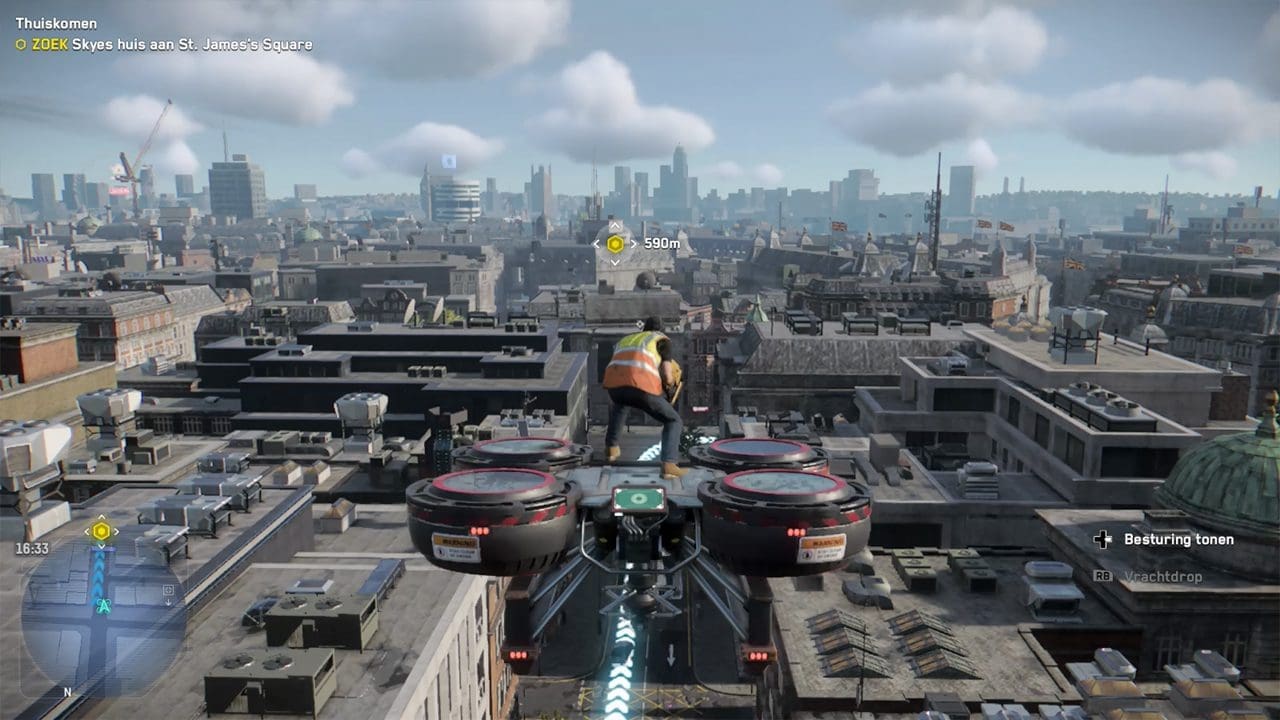 Ondanks de tegenvallende verhaallijn is de open-wereld wel erg tof. In het futuristische Londen rijden bijna alleen maar zelfrijdende auto’s rond. Van zelfrijdende zwarte taxi’s en klassieke Londense dubbeldekker bussen tot aan zelfrijdende digitale reclameborden. Over alle wegen vliegen drones en de rode Britse telefooncellen zijn omgetoverd tot Wifi hotspots. Er zijn controleposten die oranje beginnen te kleuren als je eroverheen rijdt wanneer je een misdaad begaan hebt en vanwege de verhaallijn zie je regelmatig mensen op de stoep gearresteerd worden. Protesten vinden plaats op grote pleinen, politiewagens rijden met loeiende sirenes rond en ambulances en legerwagens kom je ook regelmatig tegen in de game. Het is een levendige wereld en er gebeurd meer om je heen dan in Watch Dogs 2. Behalve ondergronds. Zo bestaan de metrostations uit fast travel locaties, terwijl je ook direct vanuit de map kunt fast travelen. Het is jammer dat je niet daadwerkelijk via een rijdende metro naar een volgende halte kunt reizen, waardoor je het de gehele game moet doen met laadschermen.