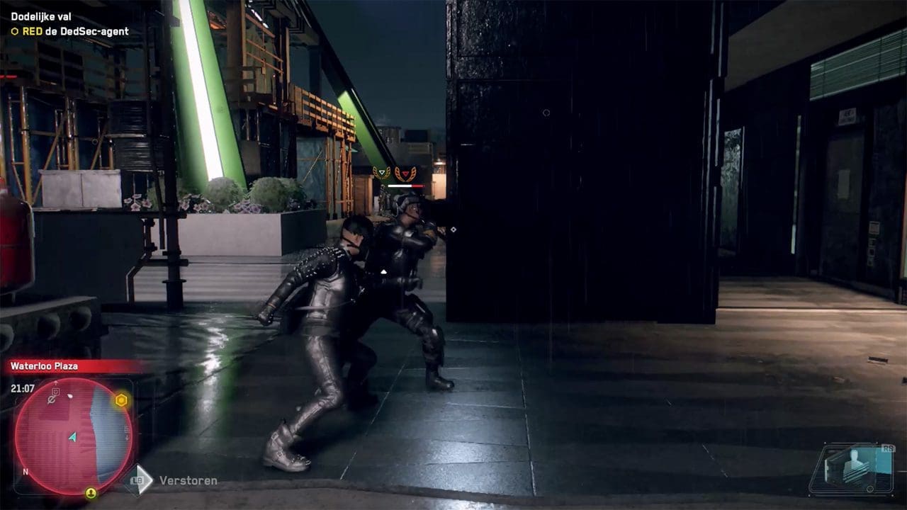 Naar mijn gevoel had Watch Dogs 2 veel meer te upgraden skills dan Watch Dogs: Legion, maar dat heeft met name te maken met het hacken. Waar in Watch Dogs 2 een aantal tree’s bestonden uit het upgraden van je hack mogelijkheden, is in Watch Dogs: Legion vanaf het begin van de game al bijna alles te hacken. Er zijn geen upgrades om sneller hacks uit te voeren wat met name in het eerste deel wel het geval was. Daar kon je aan het begin van de game maar een enkele keer een stoplicht of paal hacken en duurde het een aantal minuten voordat deze hack weer geladen was. Maar om bijvoorbeeld een vijandelijke turret over te nemen dien je nog wel een upgrade uit te voeren. Mijn favoriete upgrade is de AR-cloack, een camouflage die het mogelijk maakt om al je speelbare personages voor een aantal seconden onzichtbaar te maken. Tijdens bepaalde gevechten kan dit handig zijn om van een plek weg te sneaken en je een stuk verderop achter een muurtje te schuilen.
