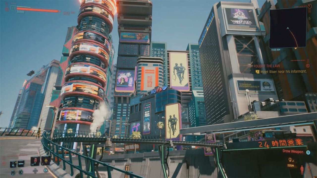 Het is niet zo heel gek dat Cyberpunk 2077 veel katana’s bevat. In het hoofdverhaal komt namelijk een Japans bedrijf aan bod en je maakt ook kennis met een aantal Japanners, maar ook met Amerikanen, Mexicanen, Haïtianen en nomads die door de badlands nabij de stad reizen. Night City is namelijk ingedeeld in zeven districten die naast de Badlands bestaan uit, City Center, Heywood, Pacifica, Santo Domingo, Watson en Westbrook. Elk district heeft zijn eigen sfeer en cultuur en dit wist mij telkens te verassen. Ook is in elke district één gang de baas. Zo heb je onder andere de Japanse Tyger Claws in Westbrook, de Mexicaanse Valentinos in Heywood en de Haïtiaanse Voodoo Boys in Pacifica. Met name Pacifica blijft in mijn geheugen hangen, omdat dit een zonnig gebied is met een strand, achtbaan en reuzenrad dat mij een vakantie vibe gaf waar de gehele tijd een geniale reggae track gedraaid wordt. Maar ook Japantown is een geweldige wijk in het Westbrook district waar een aantal street food kraampjes te vinden zijn. De Gimme Danger-missie van het hoofdverhaal waarin Takemura zijn op Yakitori bereide wijze Tsukune van een food kraampje niet lekker vindt smaken, zoals in de video hierboven, is ook een van de momenten die mij zeker bij blijft!
