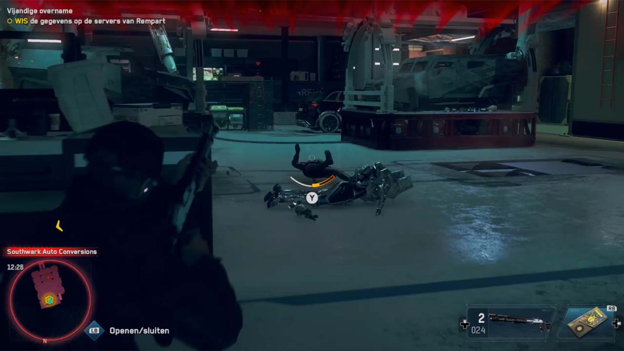 In de eerste helft van de DLC speel je als Aiden Pearce en later als Wrench. Beide personages hebben hun eigen speelstijl. Zo kan Aiden na het neerhalen van een vijand tijdelijk in slow-motion richten met zijn wapen. En met de feature Revolverheld kan hij 15 seconden lang krachtigere kogels afvuren met zijn wapen. Dit doe je door de Y/driehoekknop in te drukken tijdens het herladen wanneer het herlaadbalkje tussen de 50 en 100% is. Dit doet me denken aan het herladen van wapens in Gears of War. De Revolverheld feature heb je echt nodig, want de Rempart robot is een lastig verstaanbaar type vijand in de DLC. Deze robots versla je niet alleen door krachtigere wapens af te vuren, maar ook door ze te hacken en te oververhitten. Deze robots zorgen voor uitdaging in de DLC.