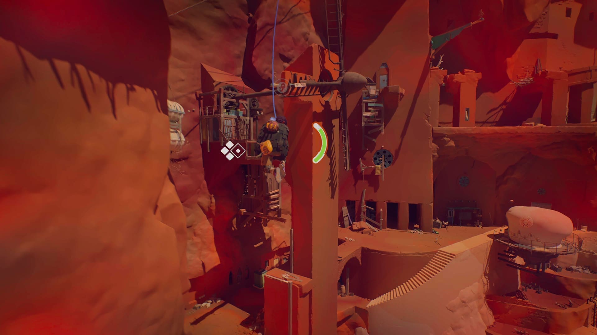 Aan de rechterkant bevindt je stamina meter. Deze gaat sneller op wanneer je rondslingert, springt of als de zon schijnt. De stamina meter vult automatisch aan als je op de grond staat. Maar je kunt je stamina meter ook deels aanvullen door de linkerstick in te drukken als je tijdens het klimmen tijdelijk stil staat. Het klimmen zelf doe je met de triggers van de controller. Elke trigger is een hand. De bumper-knoppen gebruik je om met je touw omlaag of omhoog te gaan. Dit gebruik je vooral tijdens het slingeren bij grotere afstanden. Het klimmen blijft leuk om te doen en wordt afgewisseld met andere soorten gameplay.