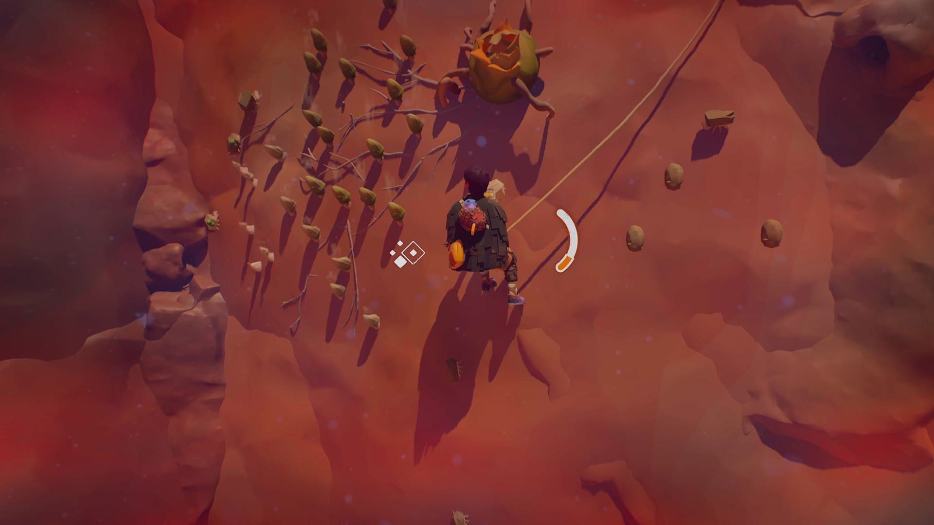 In Jusant wordt namelijk per hoofdstuk een nieuw gameplay element geïntroduceerd. In het tweede hoofdstuk dien je bij blauwgekleurde planten op de D-pad omhoog-knop te drukken. Hiermee creëer je een echo en gaat de plant voor een deel omhoog. Als je je aan de plant vasthoudt stijg je met de plant mee omhoog. Het derde hoofdstuk ziet er woestijn achtig uit en hier schijnt de felle zon. In dit hoofdstuk worden met de D-pad omhoog-knop wortels van een plant opgeroepen zodat je verder kunt klimmen. Alleen verwelken de wortels na enige tijd, dus moet je snel zijn met klimmen.
