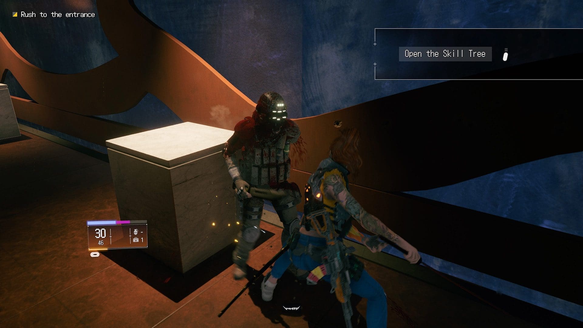 Nu ik (soort van) heb kunnen omschrijven waarom het fever dream aspect van Wanted: Dead de moeite waard is om te checken ga ik je nu iets meer over de zakelijke kant vertellen. De snoeiharde gameplay. Zoals vertelt is Wanted: dead een mix tussen een third-person shooter en een stylish hack and slash game. Wanted: Dead balanceert deze twee genres door je eigenlijk net niet genoeg ammo te geven om de vele vijanden die je van alle kanten bestormen neer te knallen. Hierdoor word je gedwongen om de haverklap je zwaard tevoorschijn te trekken en je vijanden in mootjes te hakken. Letterlijk en figuurlijk want Wanted: Dead is behoorlijk gory. Enemies worden echt in stukken gesneden zoals je dat gewend bent van de Ninja Gaiden-games. Armen, hoofden en hele rompen vliegen door de lucht. Alsof dat niet genoeg is kan Stone ook behoorlijk gave executies uitvoeren zodra een enemy stunned is. Dan haalt ze bijvoorbeeld de vijand neer met een UFC takedown move en tegelijkertijd schiet ze deze dwars door z’n hoofd. Echt heel erg grof en stijlvol. Onder het genot van een kick-ass soundtrack schiet en hak je jezelf door een handjevol levels.