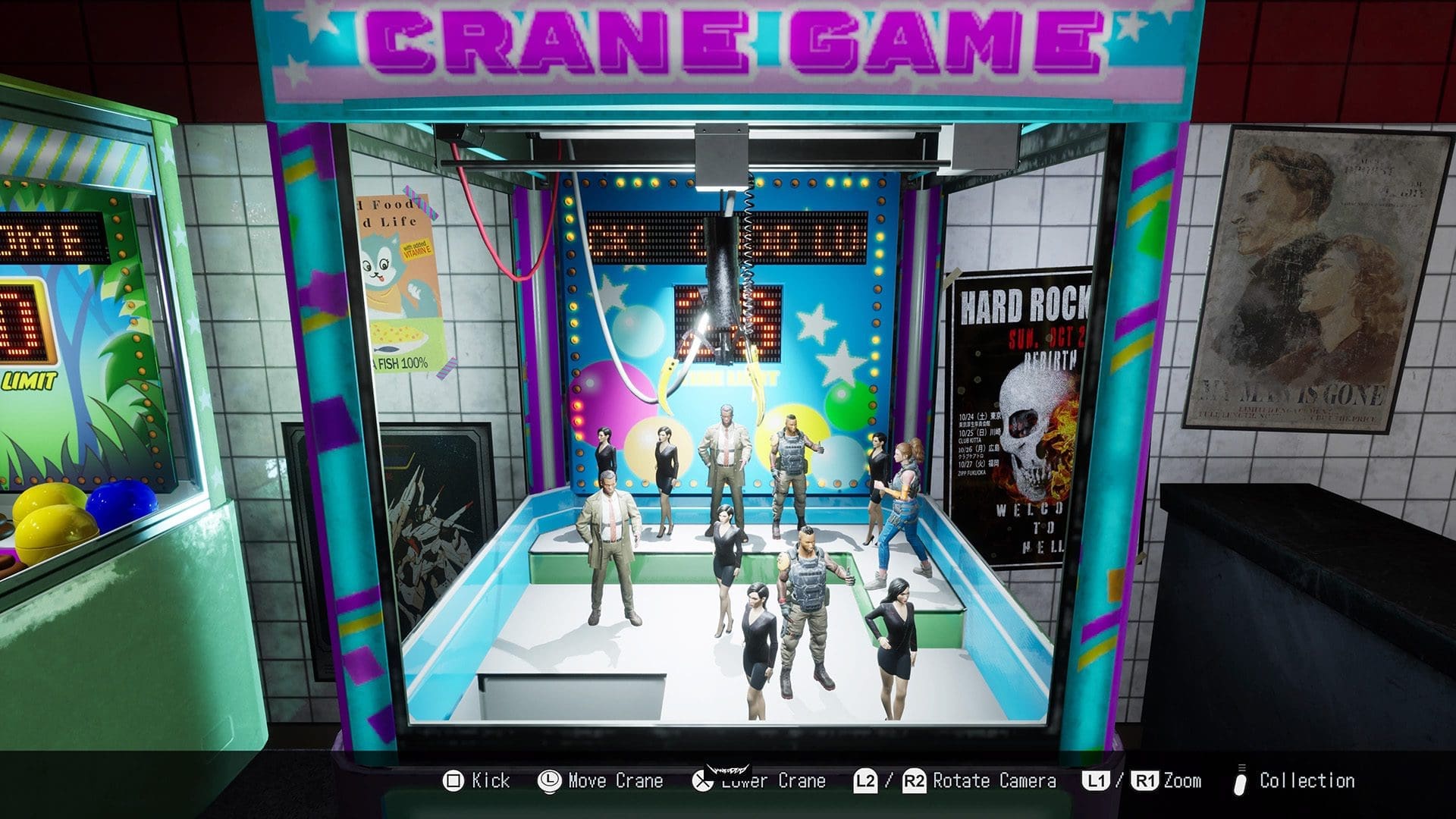Ook is het mogelijk dat je ineens random een anime cutscene te zien krijgt wat totaal niet matched met de stijl van de gameplay graphics. Je kan jezelf niet schrap zetten voor wat Wanted: Dead in petto heeft, ik heb meerdere keren in een scheur gelegen van het lachen. Niet alleen de cutscenes zijn grappig, ook de activiteiten naast de missies. Zo kan je in het politiebureau met een grijpkraan spelen en figurines en andere collectibles verzamelen. Als je genaaid wordt door de slappe grijphaak kan je ook tegen de kast aanschoppen waardoor de prijzen wellicht gunstiger terecht komen. De presentatie is echt geweldig! Ook zijn er karaoke minigames (99 luftballons zit erin!) en de ramen die ik in de vorige alinea benoemde kan je ook opeten in een minigame. Als je een beetje bekend bent met met de Yakuza-games; het lijkt hier een beetje op. Wanted: Dead neemt zichzelf lekker niet serieus. Dit begint al zodra je de game opstart en de moeilijkheidsgraad moet uitkiezen. Zo heb je normal, hard en Japanese hard. Overduidelijk een knipoog naar de oude videogame dagen waar er verschillende soorten moeilijkheidsgraden per regio waren. Ook het laadscherm is een referentie naar de welbekende “supa hot fiya”-meme. Ik kan er ongelofelijk van genieten!