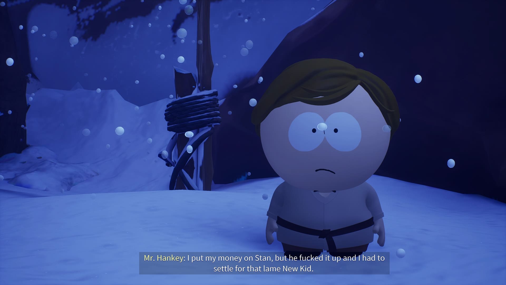 Alhoewel de South Park intro al sinds seizoen 17 in 3D is, hebben de makers de stijl van de afleveringen nooit veranderd. In het begin is het even wennen om de bekende personages in South Park Snow Day in 3D te zien. Mr. Hankey ziet er bijvoorbeeld niet bepaald mooier uit in 3D, ook al ziet poep er nooit goed uit! Het rondlopen in de spelwereld voelt eerder aan alsof je een Funko Pop achtige figure bent, dan een daadwerkelijk gamepersonage. Enfin, na een uur spelen was ik gewend aan de stijl en nam ik het maar voor lief.